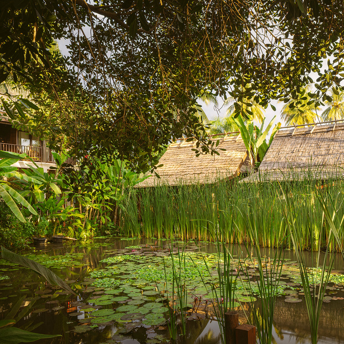 Our therapists use local natural essential oils and traditional techniques to soothe body and mind — a genuine moment of serenity in a tranquil setting beside our lotus ponds.